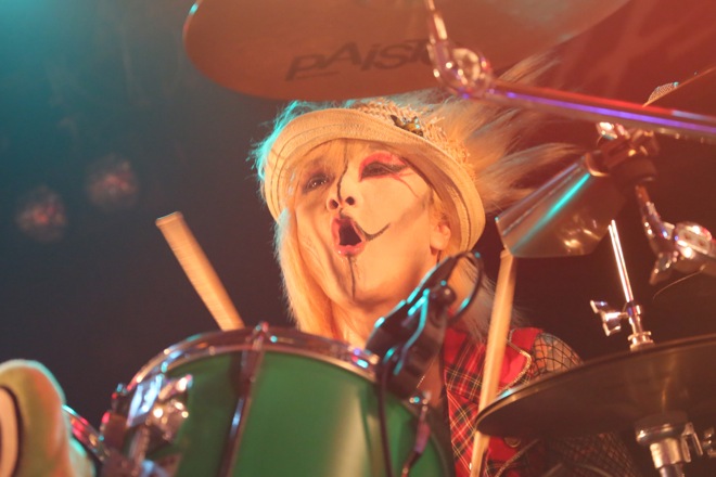 「へのへのもへじ」「Masturbation」を終えるとメンバーは一旦ステージを離れてひと時のブレイク。長州力のテーマソング「パワーフォール」が鳴り響き、KENZIのドラムソロが始まった。ホイッスルを吹いたり、スティックを投げたりして当時のパフォーマンスを再現するなど、KENZIならではの演出も心憎い。
