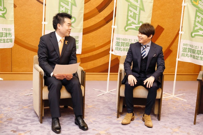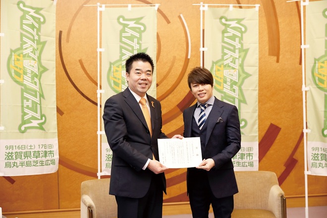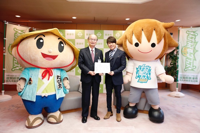 同日、草津市役所で行われた草津市長への表敬訪問では、橋川渉市長が「全国に草津市の名前を知っていただくキッカケになっている大切なイベント。今後も会場周辺とも連携して、より草津をアピールできるような環境を整えていきたい」と述べた。