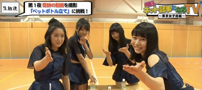 この番組は、東京女子流の4人がネットニュースに載ることを目標に困難なミッションに挑戦する番組。記念すべき第1回目は“本気で考え、汗をかき、奇跡を起こすために真剣に取り組む”ことをコンセプトに4人がバスケット連続ゴール、空中収納、ペットボトル立ての3種目に挑戦した。