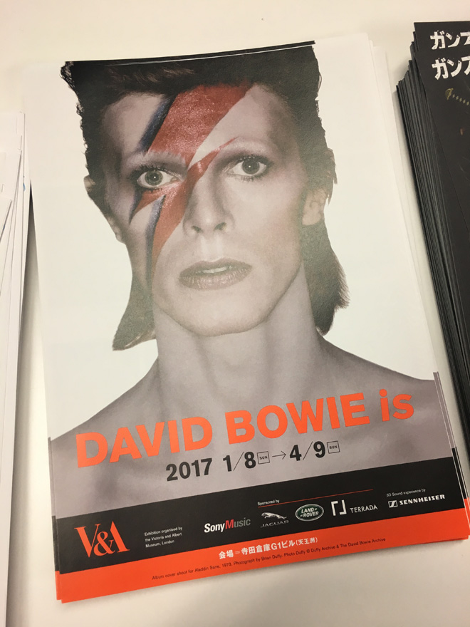 気分が晴れないのはなぜだかわからないまま、年明けから20日が過ぎた昨日、片づけ中に手に取ったボウイ展のフライヤーをまじまじと見つめ、気がつきました。スッキリしないのは、おそらく新年の幕開け早々から愛するデヴィッド・ボウイに関するニュースが延々と続くのを目、耳にしていたことやボウイの展示会に参加したことなどで彷彿させられたボウイの死のせいだろうと。