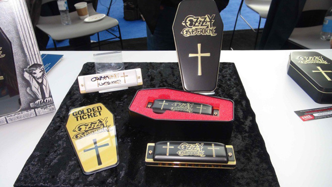 中でも目に入ったのは、ホーナーとオジー・オズボーンによるコラボレーションで誕生したブルースハープ「Hohner Ozzy Osbourne Harmonica」で、現地でも大きな注目を集めていた。コフィンケースに入っているデザインがロックファンの心を掴むポイントで、すでにネットでプレオーダーが始まっていた。価格は$64.20である。またそこには50個のゴールデンチケットがランダムに入れられており、チケットを手にした人は特別エディッションのブルースハープが当たるという。日本での発売は今春の予定だという。発売されるKeyはCとなる。