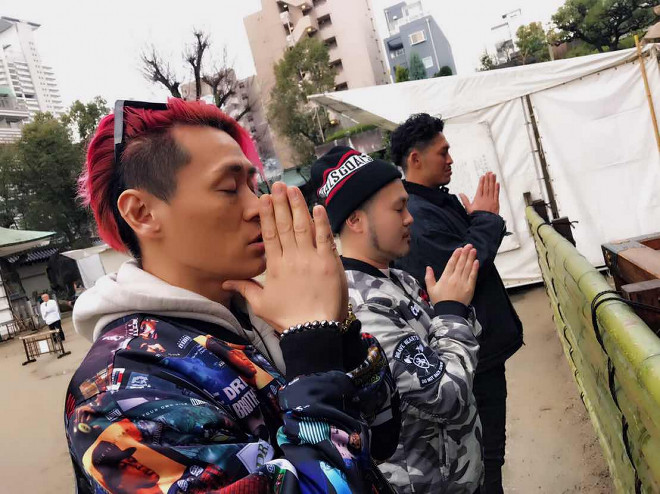 インストアイベントの合間には、会場の近所にある学問と芸能の神様を祀った大阪天満宮へお参り。ONE☆DRAFTにとって大阪は、この10年で何度もライブを行い、その度に大きな歓迎とともに迎えられた第二のホームとも言える地だ。神様にファンへの感謝の意を伝えつつ、さらなる飛躍と、5月に大阪・服部緑地 野外音楽堂で開催されるスペシャルライブ<デビュー10周年記念『蜂桜祭』~大阪服部緑地 野音SP~>の成功を祈願した。