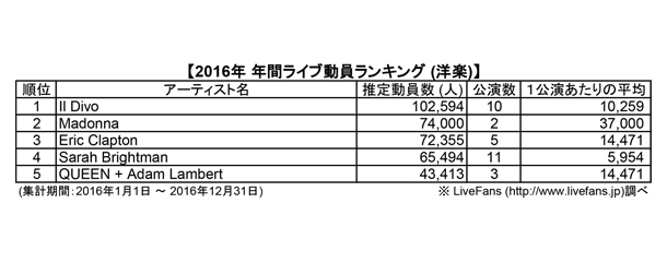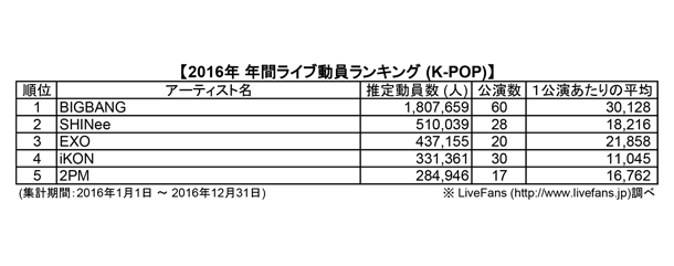 1位はBIGBANG、2016年のライブ観客動員ランキング発表