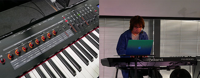 「GO:KEYS」は多彩なサウンドとパフォーマンス機能を使って演奏を楽しみたい人向け。注目はむずかしいことを考えずにどんどん曲が作れるループミックスという機能。ロック、ヒップホップなどダンス系を中心にループ・ミックス・セットを12種類内蔵。鍵盤にフレーズ・パターンがアサインされており、指一本でパターンの演奏が可能。カンタンにリズム、ベース、シンセやピアノのバッキングと次々にパートを重ねていける。もちろんこれに手弾きの演奏を加えることも可能だ。さらにパネル上のパフォーマンスパッドでエフェクトをコントロール、フィルターやロールといったDJっぽいサウンド変化を楽しむこともできる。「自動伴奏をカンタンに生成してくれてどんどん曲を作れるキーボードは今までたくさん出ているんですけど、何が違うのかと言うと、ローランドが本気を出すとやっぱりいいんですね。パターンそのものがとてもいいです。」「エレピやストリングス、ピアノ、一つひとつの音色がものすごくクオリティが高い」「見た目もかっこいいし、セカンド・キーボードとしてもばっちりおすすめできるんじゃないかな」とは、デモ演奏を披露した篠田元一さん。