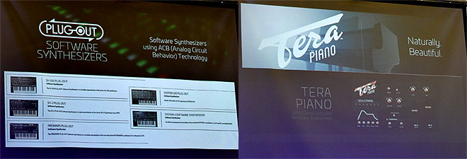 ▲Roland CloudにはSH-101やSH-2といったPLUG-OUTシンセや、8TBのサンプルによるフラッグシップバーチャルピアノTERA PIANOなどがラインナップされる。