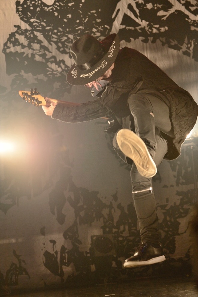 と逹瑯が宣戦布告し、ライヴのキラーチューン「蘭鋳」を2曲目に持ってくるまさに容赦ないセットリストだ。この展開にオーディエンスが興奮しないわけはなく、リリースされたばかりの最新アルバム『脈拍』からスリリングで緊張感あふれる「絶対絶命」を初披露。無駄なものがそぎ落とされたソリッドな演奏によってミヤ (G)、YUKKE (B)、SATOち (Dr) の強靭なプレイが際立ち、達瑯の表現力豊かなヴォーカルに圧倒される。不動のメンバーで結成20周年を迎えるバンドの凄みが速攻で伝わるステージはさすがとしか言いようがない。