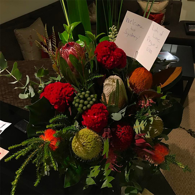 また、バンドのマネージメント・スタッフの1人Fernando Lebeisは、アンガスと奥さんから贈られた「シドニーへようこそ!」とのカードが添えられた花束の写真をインスタグラムに投稿している。