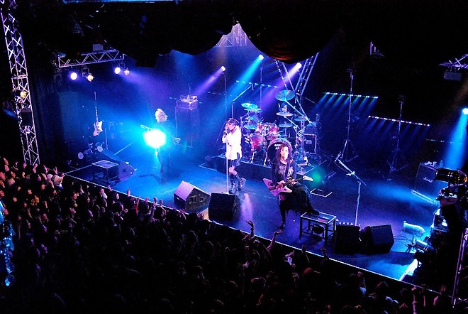 “25周年=四半世紀”ということで、この日のオープニングに選ばれたナンバーは「Quarter Doll」。勢いよく幕を開けたステージは、「幻想カタルシス」「戦慄迷宮」といった近年のヒットチューンをはじめ、1996年に発表したメジャーデビュー曲「Blue Moon」や代表曲のひとつである「99番目の夜」、そして久々の披露となるアルバム収録のレア曲など、バラエティーに富んだセットリストが華々しいもの。PENICILLINの25年間を彩る新旧様々な楽曲が繰り広げられ、終始温かな祝福ムードに包まれたライブとなった。