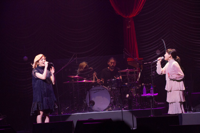 2日目・8日(水)はCharaの「やさしい気持ち」で幕を開け、きのこ帝国・佐藤千亜妃とのコラボステージでは「Swallowtail Butterfly~あいのうた~」(YEN TOWN BAND)、「ひこうき雲」(荒井由実)を共演。続いて登場のさかいゆうは、自身の音楽人生において多大な影響を受けたという田島貴男とともに「接吻」(ORIGINAL LOVE)、「WINDY LADY」(山下達郎)を熱唱し、その濃厚なハーモニーで観客を酔わせる。またイベント中盤に登場した吉田美奈子は、森俊之との共演による「THE LIFE」に続き、自身がいつか一緒に歌いたいと願っていたという中納良恵とのセッションで「FUN!」、「Oh Happy Day(Respect to Aretha Franklin & Mavis Staples)」を披露。その入魂の歌声に会場からは感嘆の声が上がった。