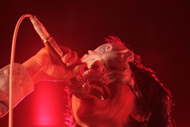女王蜂が2017年2月10日、赤坂BLITZにて単独公演<仮面の宴>を開催した。同公演は“仮面”をドレスコードとしたもので過去2回開催、今回は約5年ぶりとなる。「会場にて配布致します仮面を、開演中外さずにライヴをお楽しみください」と事前にアナウンスされていたとおり、場内は仮面を着用し、女王蜂に負けず劣らずな個性的ファッションに身を包んだファンで埋め尽くされていた。