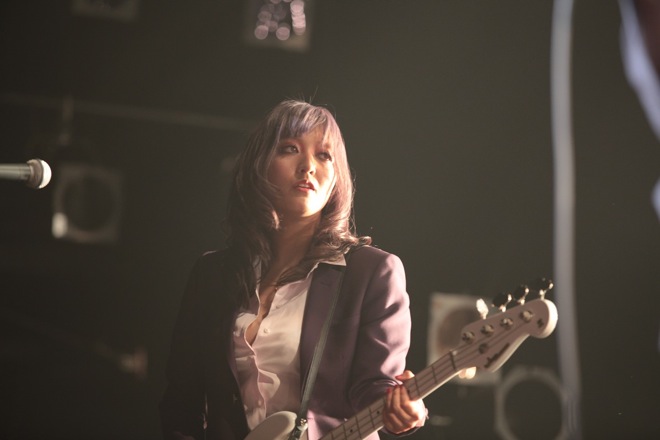 「スリラ」「一騎討ち」という必殺ダンスチューンの連発では赤坂BLITZが一夜限りの異次元ディスコ空間と化し、軽快なピアノの旋律とギターのワウの響きにミラーボールが輝かしい光を反射し続けた。獄門島一家とのスプリットシングル収録「金星」は、そのエンディングでやしちゃんのベースソロに繋いで「ワンダーキス」へ。「次の曲、一緒に歌ってくれますか?」というひと言が告げられると「もう一度欲しがって」のコール&レスポンスが湧き、男性女性の二面性を一人二役で演じる仮想デュエットソング「売春」が披露された。