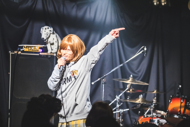 恒例の企画コーナーでは、Jun(G)の生誕祭ということで”ザ・ジュンズ・ベストテン”と銘打った企画が用意されていた。Jun(G)が好きだという有名歌謡曲がベストテン方式でランキング化され、それをメンバーが一人ずつステージ上で披露。大輝(Dr)は女装し、aikoの「ボーイフレンド」を、わちゅ~(Ba)はサングラスをかけてGACKTの「12月のLove song」を、TSUBASA(Vo)はスーツに着替え星野源の「恋」をキレッキレのダンスと安定の歌声で魅了、そしてこの日の主役であるJun(G)も女装をし、国生さゆりの「バレンタイン・キッス」をカバー。バレンタイン・イブにふさわしい”恋愛ソングメドレー”で会場を盛り上げた。
