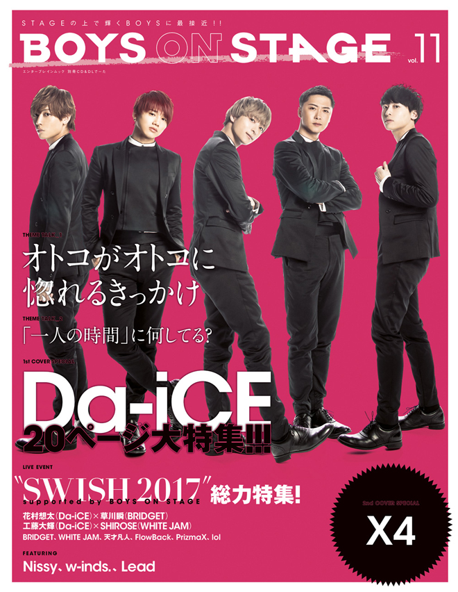 またイベントツアー<SWISH TOUR 2017 supported by BOYS ON STAGE>に出演するアーティストにスポットを当てた企画も実施。Da-iCEからは花村想太がBRIDGETの草川瞬と、工藤大輝がWHITE JAMのSHIROSEと対談する。
