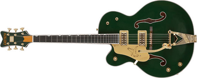 メイプル・ネックには組み合わせられたのは、エボニー・フィンガーボードとネオ・クラシック“サムネール”ポジションマーカー。グローヴァー・インペリアル・マシン・ヘッド、グレッチ・ロゴの入ったレフト・ハンド用ビグスビーB6G/Lヴィブラート・テイルピース、TVジョーンズのTVクラシック・ピックアップ、ジュエルドGアロー・コントロールを搭載する。