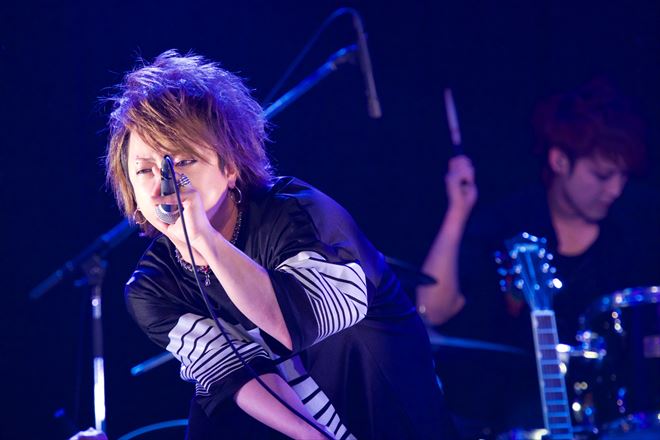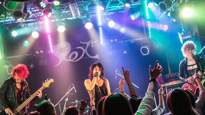 トリは“愛”をコンセプトに掲げるラミエル。聖(Vo)が「甘いLast kissを」と言って幕が開けると白一色の衣装に身を包んだ、おとぎ話の世界から出てきたようなビジュアルにまず目を奪われる。だがその繊細な見た目から想像できないほど一曲目「Last kiss」から聴く者に真っ直ぐ気持ちをぶつけてくる。“君と笑いあえる未来のために僕はこの場所で愛を歌い続けます”といった熱い台詞が入る場面もあり、フロアは一瞬で彼らの世界に染められた。この日はサビのフレーズがクセになる新曲「with you」を含む全4曲で構成されたセットリスト。すべて“愛”がテーマの楽曲で、ひとつづきの物語を見ているようなステージで、この日のライブが締めくくられた。