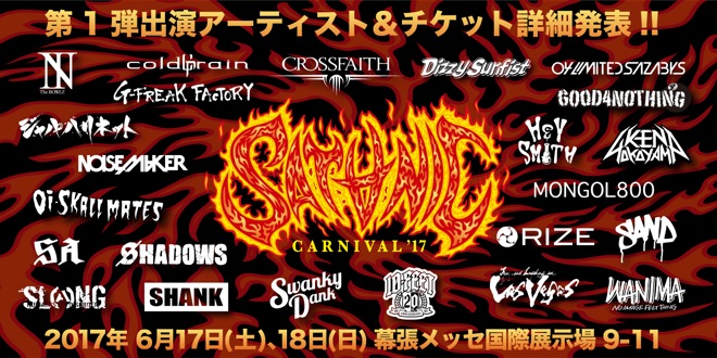 PIZZA OF DEATHが2014年に立ち上げたパンク/ラウドロック/ハードコアの祭典<SATANIC CARNIVAL>が、2017年も幕張メッセ国際展示場9-11ホールで開催されることは既報のとおり。このたび出演アーティスト第一弾が発表となった。