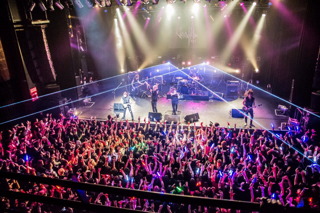 また、新曲「Reverse Bonito」では、“カツオ入れ”と書かれたダンボール箱に入ったカツオのぬいぐるみが運び込まれ、haderuとhidekiがフロアに投げ込んだカツオをオーディエンスがステージへ返すという斬新な演出も。本編ラストでは「迷いに迷った11年間でしたけど、こっからはもう大丈夫。jealkbって何をしたらいいのかが解ったから。俺たちは迷わないし、みんなも迷わせない。だから、2017年は、安心してjealkbに付いて来て下さい。俺たち、絶対に大きくなるから!この時から支えてくれたみんなのこと、絶対に忘れないから!絶対行こうな武道館!」とhaderuが宣言し、結成11年にして新たなステージに踏み出した彼らの強い決意を印象付ける一夜となった。