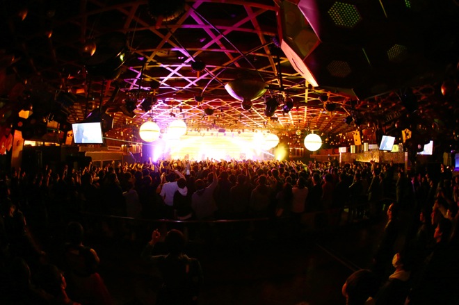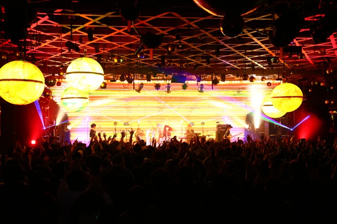 午後6時、猥雑な繁華街を抜け、古びた建物の扉をくぐる。赤いらせん階段を降りるとそこは異世界だった。昭和の匂いと釣りさがる惑星、かつて巨大なキャバレーとしてにぎわっていた空間は、レトロでありながらどこか近未来的な不思議な空気を醸し出す。1000人近いであろうオーディエンスがひしめき合う場内は今か今かと植田真梨恵の登場を待ちわびていた。