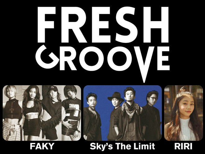 <FRESH GROOVE>はシーンで注目を集める若手アーティストらが集結するライブイベント。記念すべき第一回開催となる今回は、東京発のダンス&ボーカルグループ・FAKY、沖縄在住4人組ヴォーカルグループ・Sky’s The Limit、現役女子高生R&Bシンガー・RIRIの3組が登場する。