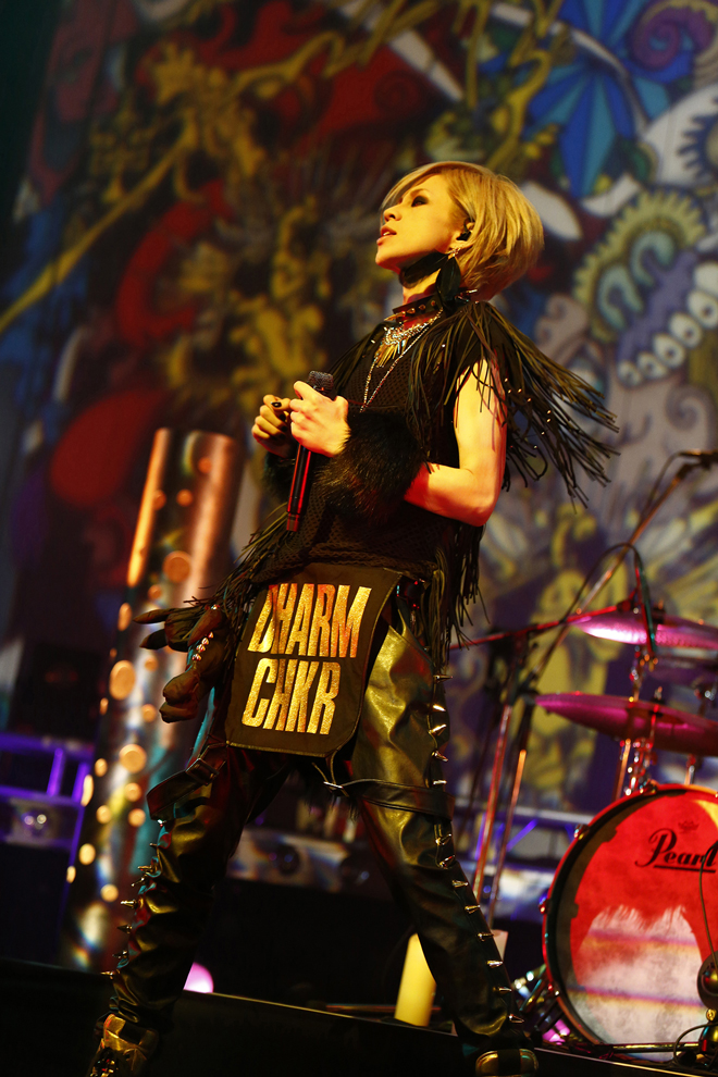 その名もズバリのハードエッジな「The BUDDHA」から口火を切ったこのライヴにおいては、演奏される曲目によってバックドロップに『VEDA』のアートワークにも使われていた“曼荼羅”が映し出されたり、ヴォーカリスト・mayaとギタリスト・Aijiの衣装にそれぞれに“DHARM CHKR”(釈迦が説いたとされる法輪・教義を意味する言葉)という文字がデザインされていたほか、「Fight Club」の歌詞にもさらりと〈煩悩〉という言葉が織り込まれていたりするなど、随所に濃厚な仏教フレーバーが香っていたことになるだろう。