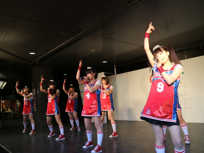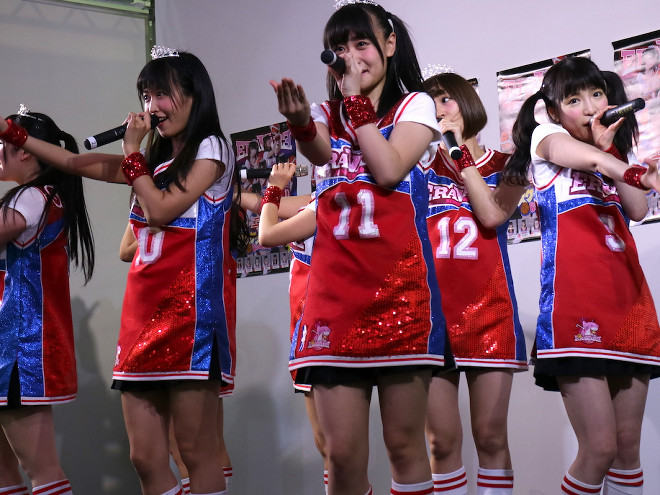 2月25日(土)、エラバレシにとって初めての遠征地となる大阪・難波OCAT B1Fポンテ広場ウィングステージで初日を迎えた今回のキャンペーン。1部はミュージックビデオでも着用している制服(N高等学校)姿で登場し、シングル表題曲の「バスケットクィーン」を2回歌唱するなど全5曲を披露。2部では、スケジュールの都合で1部に参加できなかったもえのあずきも合流し、7人全員揃ってのパフォーマンスに。大阪出身のもえのは最初の自己紹介で観客へ「ただいま~!」と呼びかけると、一斉の「おかえりー!」の声で暖かく迎えられ、会場を盛り上げた。