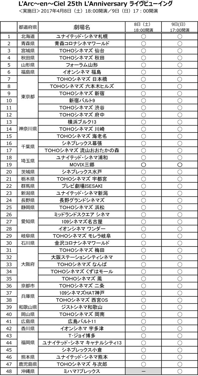 <L’Arc-en-Ciel 25th L’Anniversary LIVE>ライヴビューイング情報サイト http://liveviewing.jp/larc25th/