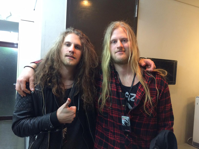 観客にスクリームさせるみせ場の作り方も場数から学んだものだろう、もっと大きなステージでも映えるバンドだ。楽曲の素晴らしいバンドは多いが、ライブでの実力とともにここまで引きつける事ができるのは近年の若手ではナンバーワンではないだろうか。このパワフルなステージ前にシンガーであるニルス・モリーンとオリジナルメンバーであるギタリスト、ラヴ・マグヌソンがインタビューに応えてくれた。