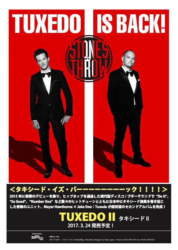そしてシアトルを拠点にスヌープや50セント、ドレイク、ケンドリック・ラマーを筆頭にアンダーグラウンドからメジャーアーティストまで幅広く手掛けるヒップホッププロデューサー、ジェイク・ワンの2人によるディスコ/ファンクユニット、タキシードが渋谷SOUND MUSEUM VISIONで再びパフォーマンスを行う。