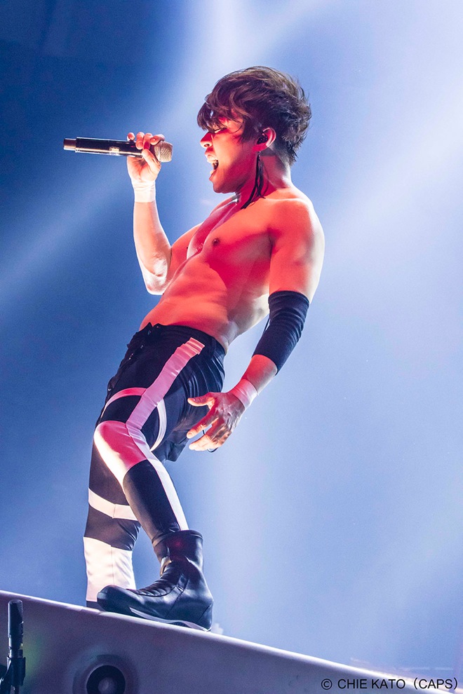 オープニングナンバーは、デビュー曲の「独裁 -monopolize-」。続いて、「LEVEL 4」「HIGH PRESSURE」「WHITE BREATH」「HOT LIMIT」といった大ヒット曲を序盤から惜しみなく畳み掛け、観客のボルテージを一気に引き上げる。