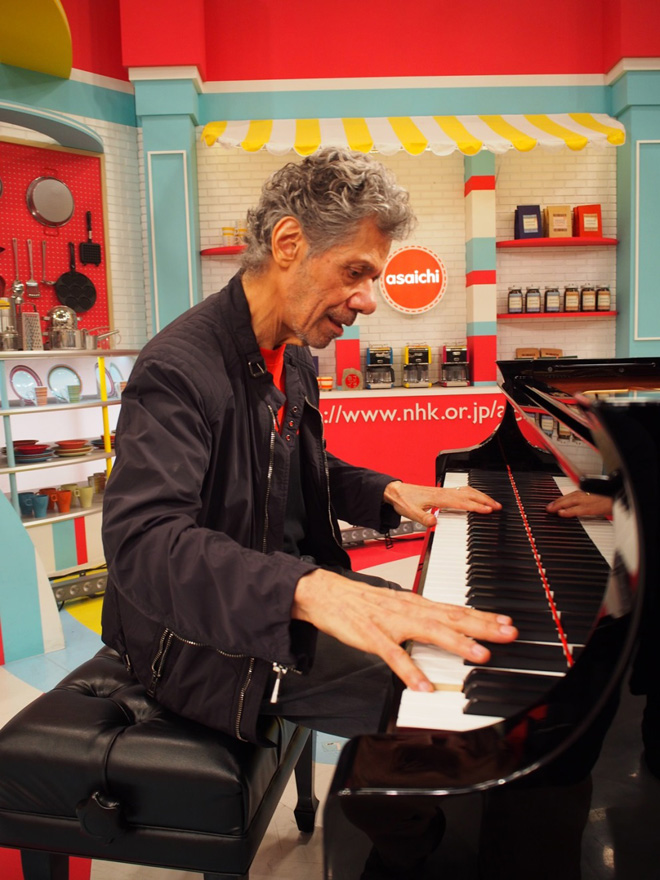 チック・コリアが3月17日(金)NHK総合「あさイチ」に出演することとなり、3月15日(水)に渋谷のNHKで収録が行われた。チック・コリアが日本のテレビ局のスタジオで番組出演をするのは、1980年代中盤の深夜番組以来、30年ぶりになるとのことだ。