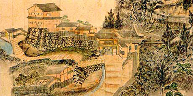 ここまでが城の周りの話、ここからが本編だ。まずこの三ノ丸。この角に天守か?と言えるほどの大きな櫓台の跡がある。大矢倉跡である。段になった石造りで地下から数えて3階建てだったとされる。城下町側の物見櫓の役割を果たしていたとされるが、もはやこれは天守と言っても過言じゃない大きさと威嚇を感じる。大矢倉の外側には北門跡があり、家臣達の屋敷跡だったとされる曲輪の跡に作られたさくら公園や木曽川に降りれる道に繋がっている。そこには堀と言えば小さいが飲料用として使う池もある。大矢倉の横にあった門が資料館に保存されている風吹門だ。二階建ての櫓門だったことが絵図でわかっている。この門が虎口になっていないことから当時は搦手だったことがわかる。搦手というより単なる裏口に近いかもしれない。というのも大手の竹門を目指して登っても、裏の風吹門を目指して登ってもどっちにしろ三ノ丸に着くように出来ているのだ。となるとこの城の搦手は何処になるのか?そう考えるだけで面白い。