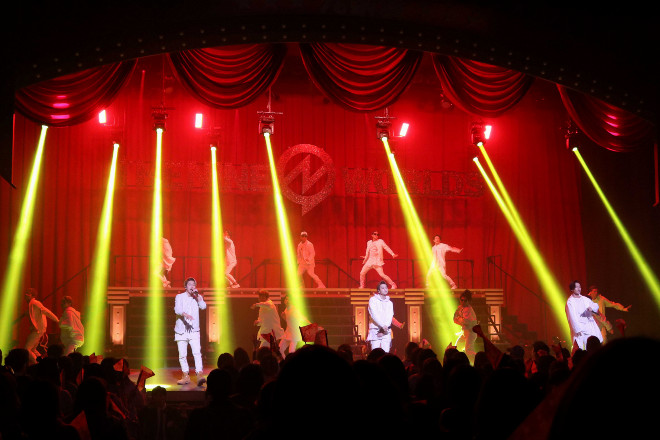 続いて、DJ SOULJAHのイントロデュースでステージに登場したのは、EXILE SHOKICHI。THE RAMPAGE from EXILE TRIBEのパフォーマー陣と共に「Machine Gun Funk」や「IGNITION」を披露し、女性ダンサーを迎えた90’sフレイヴァ全開の「Rock City」や「HERE WE GO」で会場のボルテージもピークに。DJ SOULJAHのターンテーブルさばきやTHE RAMPAGE from EXILE TRIBEのパフォーマンスとも相まって、博多座がクラブさながらの熱気に包まれた。