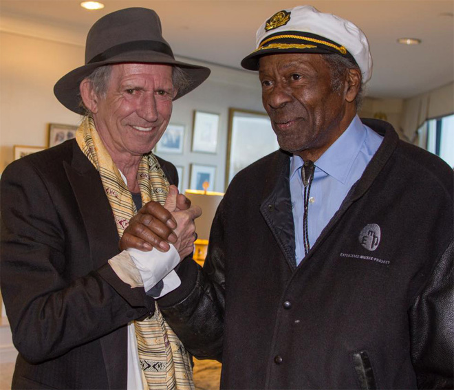 キースは、チャック・ベリーが1986年、ロックの殿堂入りしたときにプレゼンターを務めるなど、特別な関係を築いていた。チャック3月18日に亡くなったときには「大きな光が消えた」と追悼の言葉を残した後、何度もTwitterに彼との思い出の写真を投稿していた。
