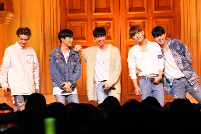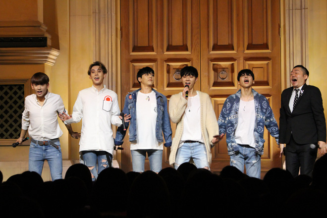 セヨンの「声ちょうだい!」という煽りから、まずニューシングルのカップリング曲「タンマレ〜はっきり言って〜」、バラードナンバー「RAIN」を2曲続けてパフォーマンス。MCではインスが、シングルの表題曲「出会いあいして」は湘南乃風のSHOCK EYEからの提供曲であることと「4月にぴったりの曲です。僕たちと一緒に歌ってほしいです」と楽曲を紹介。「出会いあいして」を歌う前には、ファンに向けて一人ずつメッセージを伝えた方がいいとSHOCK EYEからアドバイスを受けていたことから「実はすごく緊張している」「僕らと出会った瞬間を思い浮かべて聴いてほしい」などそれぞれが初披露前の心境を語り、最年少のチェジンは「お兄さんたちがたくさん話しちゃうから話すことがないですよー…」と甘えん坊な一面を見せるといった一幕も。そして、すべての出会いへの感謝を込めた「出会いあいして」を感情たっぷりに歌唱し、会場からは大きな拍手がわき起こった。