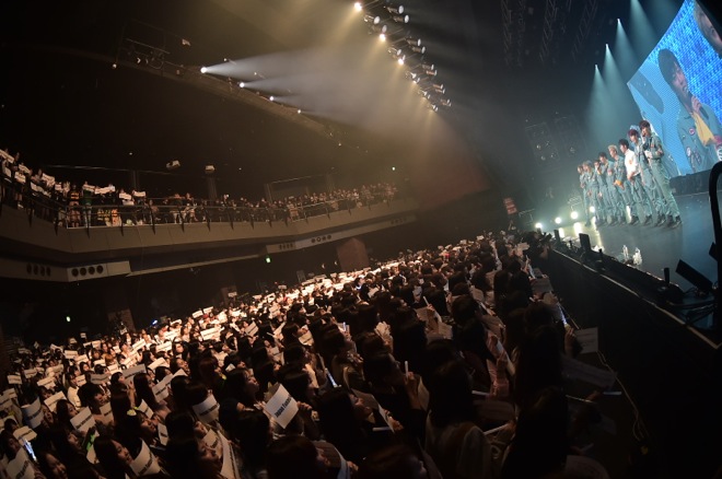 オープンと同時に会場が超満員に至った今回のショウケース。とてつもない熱気に包まれたなかメンバー9人が登場すると、割れんばかりの歓声が上がり、韓国デビュー曲「Fanfare」を歌うと大きなファンコールが起こった。チャニが「オープニングからみなさんの熱気がスゴくて、テンションマックスでパフォーマンスできました」と言うほどの盛り上がりぶりである。