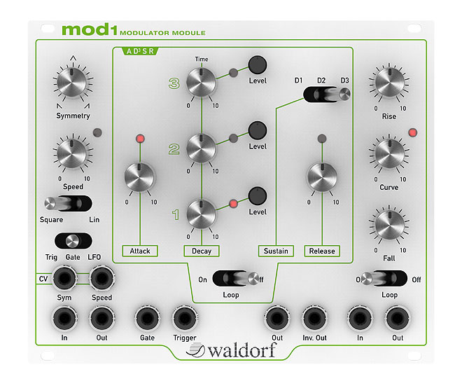 ユーロラックは、独Doepfer社が提唱するモジュラーシンセサイザーの共通規格で、パネルのサイズや電源のコネクターの仕様を共通化することで、対応する多くのメーカーの製品を組み合わせて、独自のモジュラーシンセサイザーシステムを構築できる。今回登場した「mod1」は、Waldorfのユーロラック規格製品の第5弾として登場したフルアナログのモデルで、ユーロラックシステムになくてはならないモジュレーションに特化したモジュールだ。