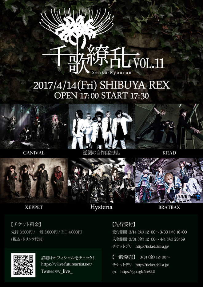 注目の若手ヴィジュアル系バンドを集めたライブイベントシリーズ<千歌繚乱>の第11回目の公演が、明日4月14日(金)渋谷REXで行われる。