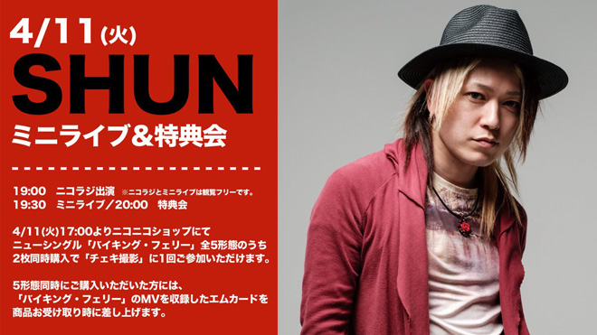 内容:SHUNシングルCDリリース予約会あり!