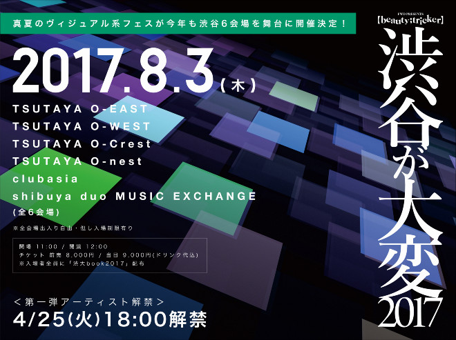 8月3日(木)、真夏のヴィジュアル系フェスティバル<FWD Presents【beauty;tricker】~渋谷が大変2017~>が開催されることが発表となった。