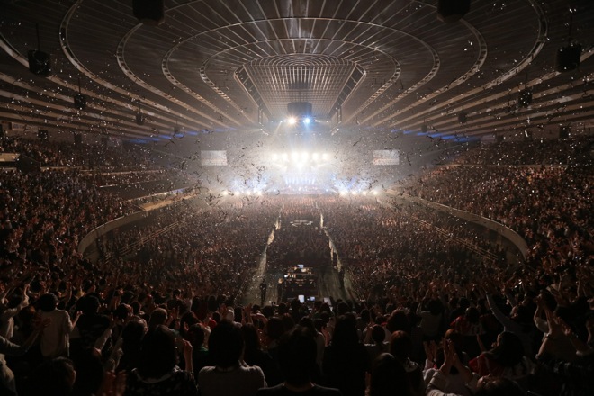 アニメ『orange』のオープニングテーマにも起用された「光の破片」では、ミラーボールが出現し、会場中を眩い光が包む。「最近、自分の身の回りで新しい命が誕生したという嬉しい知らせを聞くことが多くなり、“おめでとう”の代わりに自分なりに何かできないかと考えたら、その産まれた命が、やがて大きくなって、お父さんやお母さんに、こんなことを語りかけたらと幸せな未来を想像しながら書いた曲を次に歌います」と、16曲目「産まれた理由」を歌い始めると、ステージ上のスクリーンに新しい命の誕生とともに人生を歩む家族のアニメーションが映し出され、感動的な演出に温かい拍手が会場を包んだ。