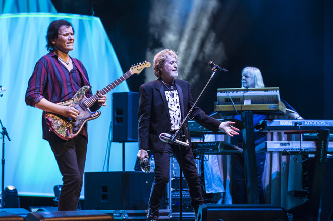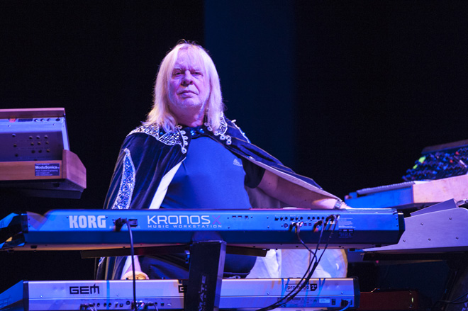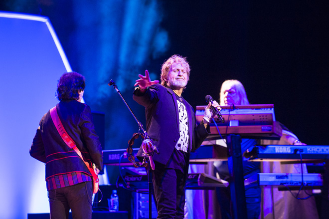 ARWが始動した頃と比べ、ややスリムになり髪の毛も伸びたトレヴァー・ラビンは相変わらずのパワー・ギターでグイグイと迫るタイプのサウンドを奏で、リック・ウェイクマンはズラリとキーボードを並べたお得意の品評会的セッティングで、さらに70年代をほうふつさせるマントを羽織り、見た目にもゴージャスな出で立ち。そしてジョン・アンダーソンは、72歳とは思えないほど軽やかで俊敏な動きをし、イエスのトレードマークと言えるファルセット・ヴォイスも伸びやかで音圧たっぷり、やはり彼が歌ってこそのイエス・ソングだと実感させられた。忘れてはならない、ジョンによる「ぞうさん」と「どんぐりころころ」の2本立ても登場している。