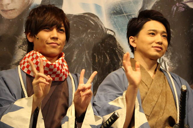 Da-iCEの岩岡徹と花村想太、松本利夫、早乙女友貴、馬場ふみか等が出演する舞台『ちるらん 新撰組鎮魂歌』の東京公演が4月20日、東京・天王洲銀河劇場よりスタート。これを記念した囲み取材およびフォトコールが同会場にて行なわれた。