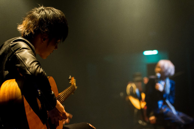 悠希の艶のあるヴォーカルが際立つ「合言葉」は途中から緋遊と一朗のリズム隊が加わっていくアレンジが新鮮。アコギで流暢にソロを弾くサトシのプレーヤーとしてのスキルの高さもさることながら、バンドアンサンブルも息がピッタリで、切ない冬ソング「White out」では手拍子が沸き起こった。