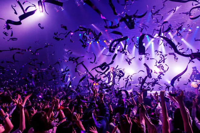 アッパーチューン「Stop My Heart」では花道で悠希とサトシが肩を組んで歌い、ラストナンバーはInitial’Lのイメージカラーのピンクのテープがフロアーに舞った「Pathos」。最後までステージに残ったサトシは「音楽やっていて初めて泣きそうになった」と言い残し、いつものようにギターをかき鳴らしながらステージを去っていった。