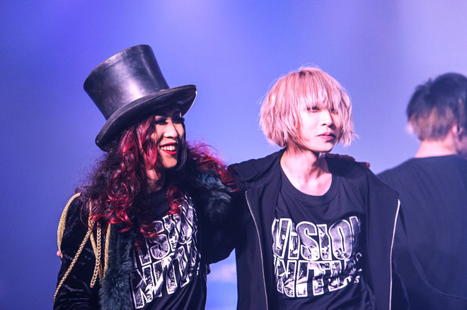 「今日のライヴに「VISION TO VISION」っていうタイトルをつけたのは僕ら、バンドが好きだし、音楽が好きだから、また5人で戻ってきたんだよね。今までやってこなかった音楽にも触れてみたくて、やるんだったら大きな目標を立ててやろうぜって。今はそういう気持ちに満ち溢れているから、みんなとヴィジョンを1つにして、夢を追いかけていきたいと思ってこのタイトルをつけました。一緒に同じ夢を追いかけようぜ!」_悠希