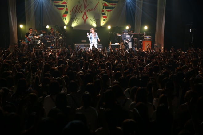 MICHAELのライブがSOPHIAの「ヤングアダルト」から始まった。ミュージックビデオに出演していた富田は、袴に着替えて舞台後方に現われ、習字パフォーマンスでMICHAELと共演。“ハンサム”という文字を力強く書き上げた。この後、松岡がMCで「初日からすごいヤツらが集まってくれました!」と出演者に感謝の言葉を伝えると、「各々進行中の活動があるなかで奇跡的にMICHAELフェス初日にみんなが集まることができた」こと、「今朝1回こっきりの通し稽古をやった」ことを話した。