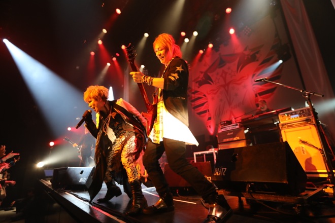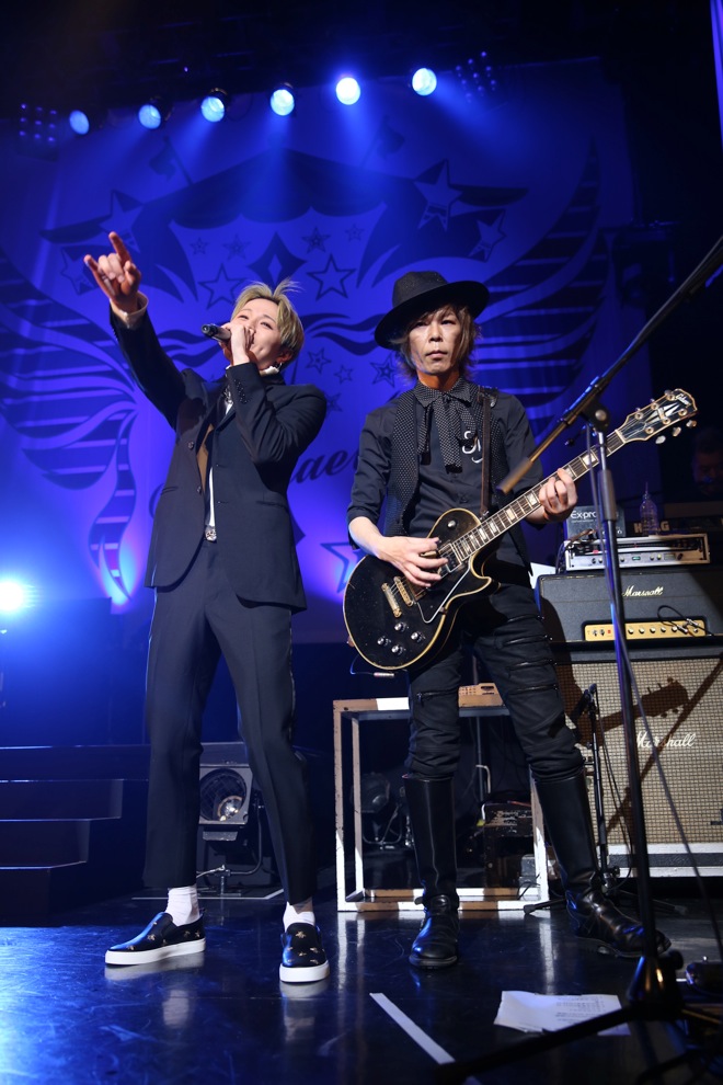 舞台『私のホストちゃん』でお馴染み“甘王”のサプライズ登場で、オープニングからオーディエンスのハートをゾクゾクさせたこの日は、2016年夏に上演された舞台<DAYDREAM BABYS*>のストーリーをベースにステージが進行。劇団鹿殺しRJPが登場し、通常MICHAELが演奏するパートを完コピ、エア演奏で披露するというもの。「日本で最初にエアバンドとして活動したのは俺たちだ」と自負する彼らの意地を見た圧巻のパフォーマンスだった。