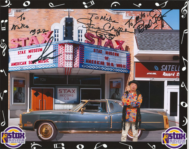 ▲サム・ムーア、ステーヴ・クロッパー、ブッカー・T.ジョーンズのサイン入り