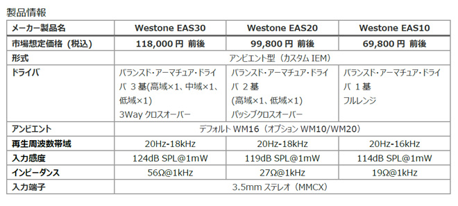 Westoneから、8ドライバーES80とアンビエントEASシリーズ発売