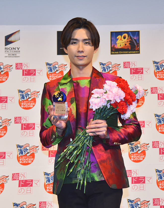 プレゼンター授与式では、28人の海外ドラマ・アンバサダーの女性たちからカーネーションを1本ずつ手渡された川上。一人ひとりに丁寧な握手で応え、「海ドラプレゼンターになれて光栄。こんな大役をいただけるとは思いもしなかったので、とりあえず親に自慢します」と会場を笑わせ、「今後も海ドラプレゼンターとして、あまり海ドラを知らない方々にも(海ドラを)普及させたい」と抱負を語った。